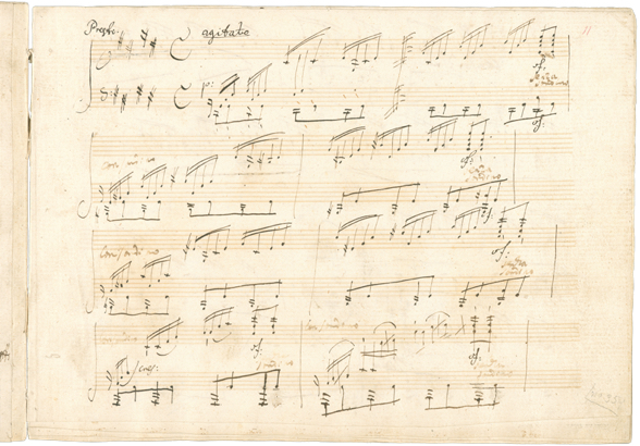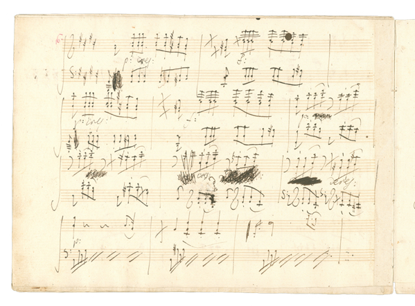 Konversationshefte werden notwendig: wegen Beethovens Taubheit müssen Gesprächspartner sich ihm schriftlich mitteilen. „Hammerklaviersonate“ op. 106.