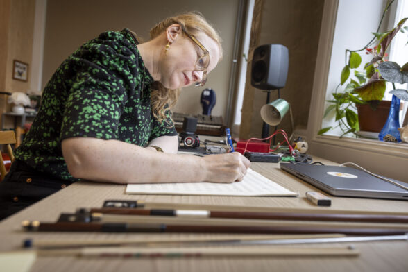 Kristine Tjøgersen’s (*1982 in Oslo, Norway) compositional practice is characterized by curiosity, imagination, humor and precision. Through her work, she creates unexpected auditory situations by playing with tradition. She has a special interest in the interplay between the visual and the auditory and how they affect each other.