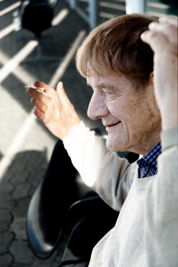 Der Raum, in dem wir uns während des Interviews befinden, gewährt eine Aussicht, die in gleichen Teilen aus Land, Meer und Himmel besteht. Große Wolken wälzen sich umher, grau und schwer von den Überbleibseln des Regens. Die Bewegung der Wolken ist kontinuierlich und zugleich in ständigem Wandel. Mittlerweile etwas weniger grau.